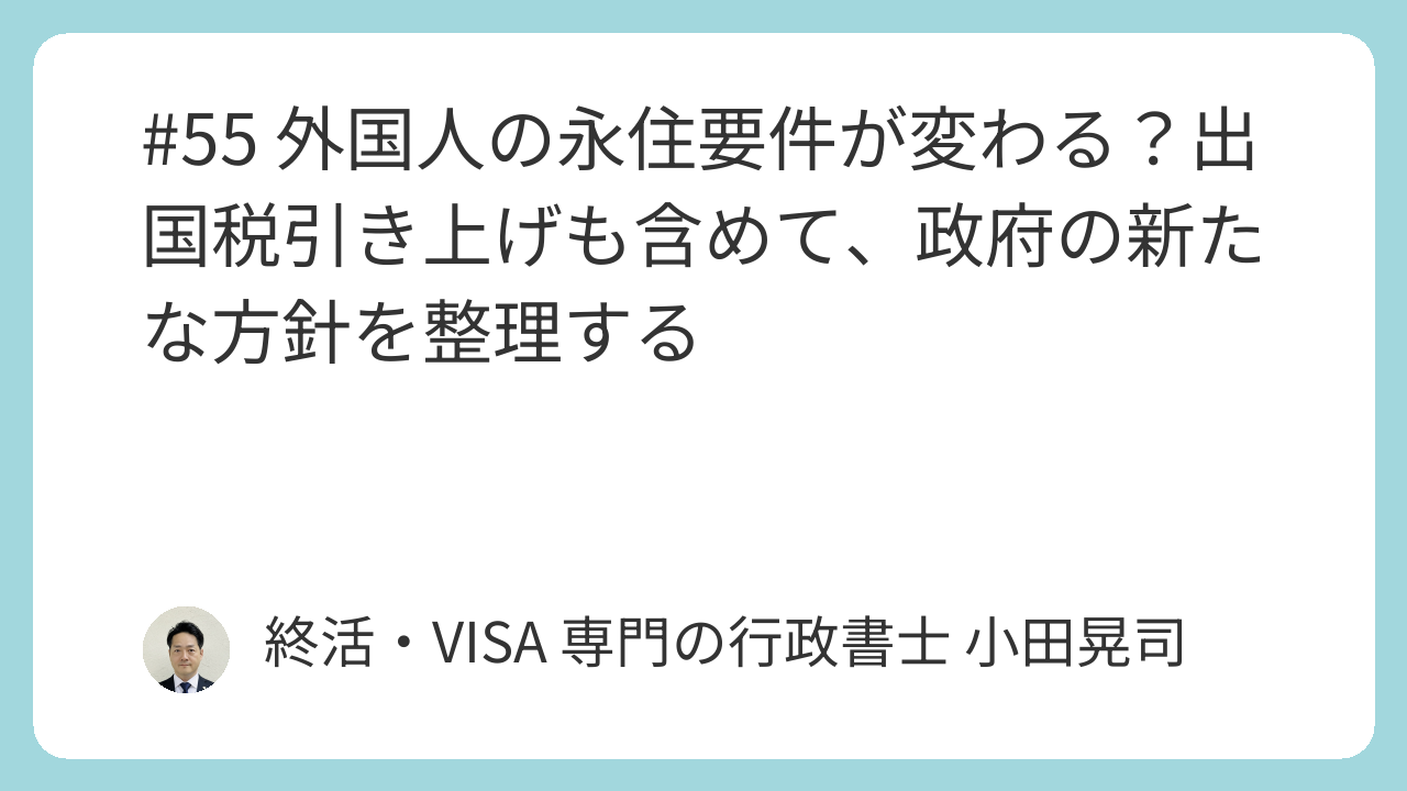 #55 外国人の永住要件が変わる?出国税引き上げも含めて、政府の新たな方針を整理する
